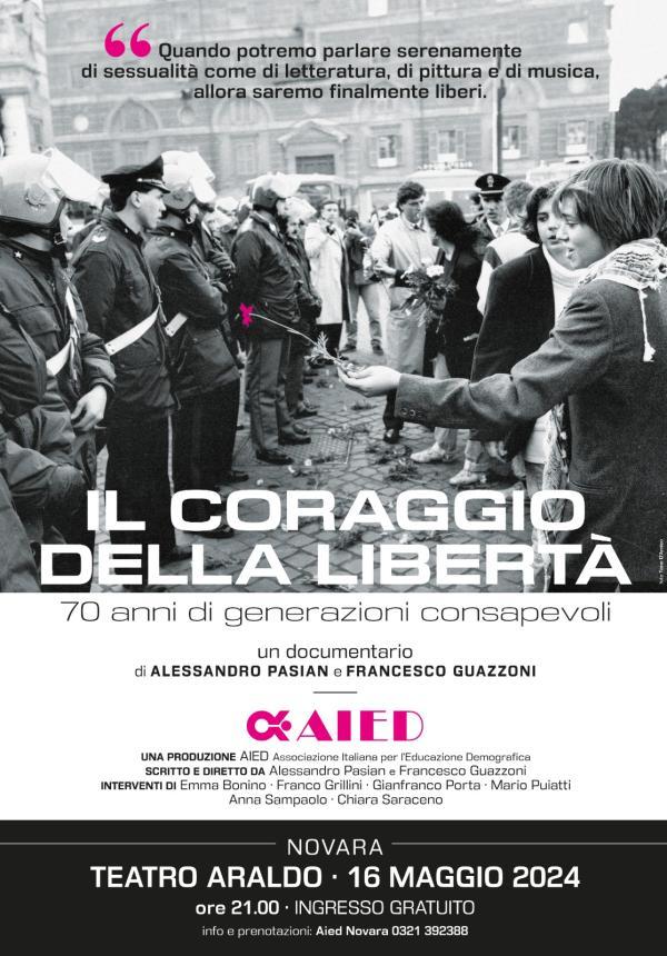 “Il coraggio della libertà. Settant’anni di generazioni consapevoli” ripercorre la propaganda fascista della fecondità come valore, l’Italia del secondo dopoguerra, il boom degli anni Sessanta, le rivendicazioni giovanili e le battaglie femministe del ’68; le conquiste civili degli anni Settanta, la drammatica stagione dell’Aids negli anni Ottanta, per arrivare alle «nuove famiglie» del nostro tempo, focalizzando sulle nuove frontiere dei diritti civili, prima fra tutte la proposta di introduzione dell’informazione affettiva e sessuale nelle scuole italiane. I registi Alessandro Pasian e Francesco Guazzoni, che firmano anche la fotografia e il montaggio del film, hanno selezionato i materiali d’archivio provenienti da Istituto Luce, Teche Rai, Fondazione Cineteca di Bologna e da produzioni come I misteri di Roma a cura di Cesare Zavattini (1963), L’amore in Italia di Luigi Comencini (1978) e Let’s kiss di Filippo Vendemmiati (2021). Nel film scorrono anche molti articoli dell’archivio AIED e degli archivi del Corriere della Sera, L’Osservatore Romano, La Repubblica, La Stampa, L’Unità, Novella 2000, Volontà. Alessandro Pasian, videomaker e regista pordenonese, ha frequentato l’accademia di Cinema e Televisione Griffith a Roma, dove ha lavorato per diverse fiction Rai e per l’emittente televisiva Sky. È stato autore televisivo, operatore video, ideatore e conduttore di programmi radiofonici. Francesco Guazzoni, videomaker e copywriter pordenonese, collabora con diverse agenzie di comunicazione come creatore di testi pubblicitari, campagne marketing, produzioni editoriali, teatrali e video.